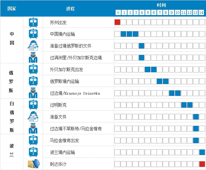 “苏满欧”于2013年9月30日成功开行首趟“定点、定时、定线、定车次、定价格”的“五定班列”,2014年3月11日起实现常态化运行。班列全程运输时间14天左右,相比传统海运门到门的运输方式节约近三分之二的时间,费用约为传统空运的一半,为苏州地区乃至苏南地区企业的产品出口至欧洲,开辟了一条安全、高效、便捷的物流通道。